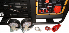 Данный генератор Lifan LF17000E3А обладает высокой мощностью в 17,0/15,5 кВт, длительным временем непрерывной работы, имеет выходное напряжение 380В. Установка комплектуется колесами 10" для удобства транспортировки и перемещения, электрическим стартером, аккумулятором 12В/36Ач, вольтметром, индикатором уровня топлива, системой контроля уровня масла. Медная обмотка альтернатора позволяет повысить КПД, уменьшить расход топлива, нагрев и износ агрегата, тем самым увеличивая срок его службы.