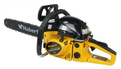 Бензопила Habert HN-5220 - является полупрофессиональной и предназначена для работ по распиловке древесины, заготовки дров, валки небольших деревьев, а также для использования её в строительстве. Бензопила Хаберт HN-5220 имеет длину шины – 20 дюймов (51 см), количество звеньев цепи - 76 звена и шириной паза шины 1,5 мм. Принудительная смазка цепи и шины применяется для снижения трения между ними, что увеличивает срок службы пильной гарнитуры. Функция механического инерционного тормоза цепи делает пилу безопасной в применении.
