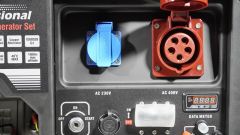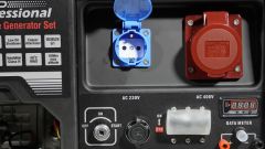 Имеются розетки на 380, 220 и 12 вольт. Это делает генератор универсальным в применении в качестве рабочего устройства на строительной площадке и в мастерской.