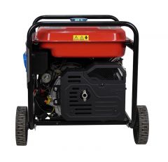 Инверторный генератор Loncin GH9000I выполнен в корпусе открытого типа на прочной стальной раме. Такая конструкция способствует профилактике перегрева работающего генератора. Для удобства перемещения генератор оснащен двумя 8-ми дюймовыми колесами и складывающимися стальными ручками, поэтому не составит никакого труда перевозить генератор на местности даже одному, не слишком физически подготовленному пользователю. Объем топливного бака генератора Loncin GH 9000I составляет 25 литров, что позволяет использовать генератор в течение 10 часов бесперебойной работы. Генератор инверторный Loncin GH9000 I оборудован двумя типами запуска - ручным и электрическим, для последнего в комплекте поставляется аккумулятор ёмкостью 8 Ач, поэтому на практике использовать данный инвертор сможет даже хрупкая девушка, запускается он простым нажатием клавиши. В генераторе Loncin GH 9000 I используется запатентованная технология инвертора SPWM, она и отвечает за высокое качество выходного напряжения. Здесь на выходе выдаётся напряжение международного стандарта класса 2 (электроснабжение приборов связи), в обычной жизни оно используется для питания чувствительных к напряжению приборов и электроники (компьютеры, ноутбуки, музыкальные центры, телевизоры и прочая сложная техника). Сердцем генератора является мощный и надежный бензиновый двигатель собственной разработки от Loncin объемом 420 кубических сантиметров. Генератор Лончин GH9000I оснащен системами защиты от перегрузки и от недостатка масла в двигателе. Обе этих системы автоматически отключают генератор в случае если наступает соответствующий критический режим во время работы, и не позволяют выйти генератору из строя. Так же на передней панели генератора, рядом с цифровым мультиметром установлен индикатор уровня масла в двигателе.
